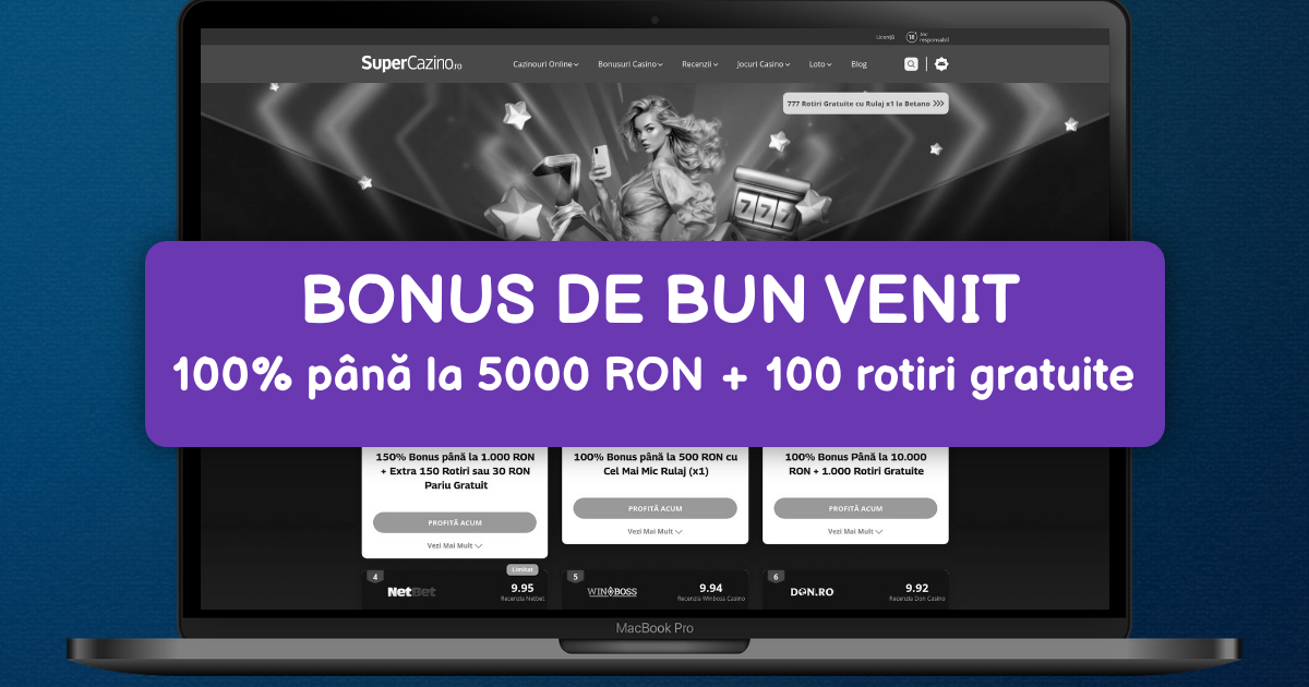 Super Cazino vă întâmpină cu o experiență de joc premium, special concepută pentru jucătorii din România. Beneficiați de bonusul nostru generos de bun venit de 100% până la 5.000 RON la prima depunere, cu cerințe de mizare de doar 35x. Cazinoul nostru funcționează sub licența Curacao, garantând siguranța și echitatea jocurilor. Vă oferim peste 3.000 de titluri captivante, inclusiv sloturi cu plată rapidă, jocuri cu jackpot online progresive și mese live cu dealeri reali. Portofoliul nostru include jocuri de la furnizori de top precum NetEnt, Pragmatic Play și Evolution Gaming. Platforma este complet optimizată pentru dispozitive mobile, permițându-vă să vă bucurați de experiența de joc oriunde vă aflați. Acceptăm diverse metode de plată populare în România, inclusiv carduri bancare, portofel electronic și transfer bancar, cu procesarea rapidă a retrageri în maxim 24 de ore. Echipa noastră de suport este disponibilă 24/7 pentru a vă asista în limba română.
